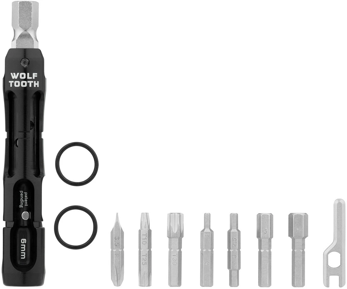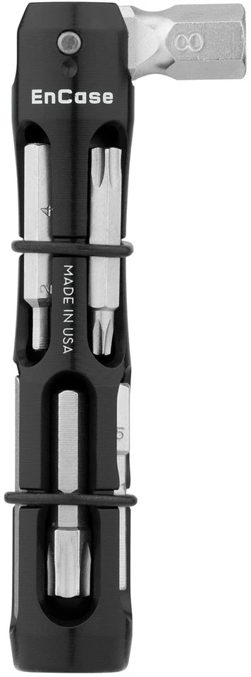 Specifications:Function:multi-toolTool Type:special toolType:hex, Torx, flat head, Phillips headTechnical Information:Material:aluminium (7075-T6), steel (CrV)Functions:2 mm hex2.5 mm hex3 mm hex4 mm hex5 mm hex6 mm hex8 mm hexTorx T10Torx T25Torx T30flat #3.5 screwdriverPhillips #2 screwdriverspoke wrenchvalve toolFeatures:14 functions8 mm hex head with 4 mm socket for the 8 separate bitsfor the home workshop or on the gocan be stowed in the handlebars via EnCase System Storage Sleevemagnets and O-rings hold parts in placeswivelling head helps in hard-to-reach places, gives extra leveragelower tool magnetic to stick to repair standMade in the USA