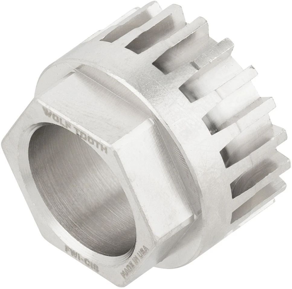The Wolf Tooth Components Pack Wrench Steel Hex Insert tool insert for Race Face Cinch chainrings and ISIS Spline bottom brackets – made of hardened, nickel-plated steel – is a practical accessory for the Wolf Tooth Pack Wrench.