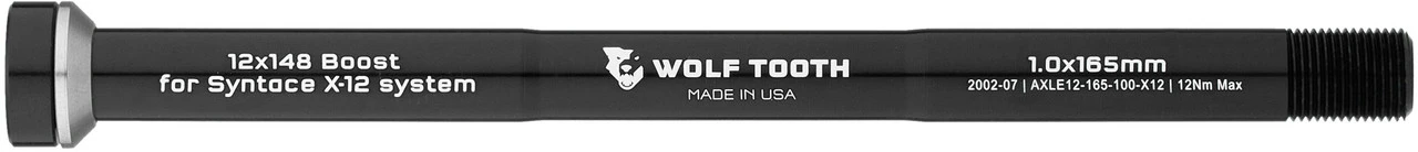 Note from the manufacturer:Always apply a small amount of grease to the washer and thread before installation.Manufacturer Numbers:12 x 142 mm:AXLE12159100X1212 x 148 mm:AXLE12165100X12Contents:1 x Wolf Tooth Components X-12 thru-axle